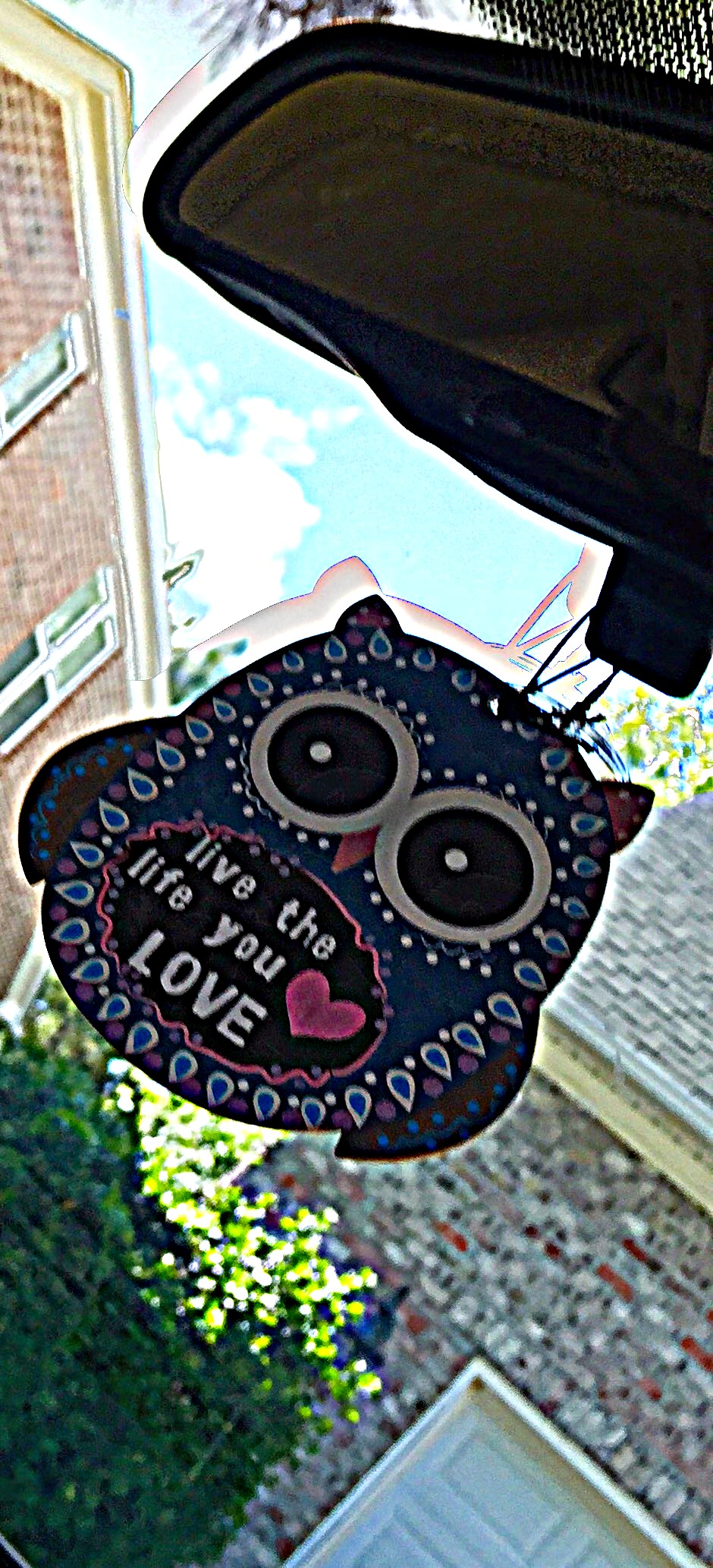 I left the owl air-freshener from my daughter’s driving time on the rear-view mirror that says “Life the Life You Love.”