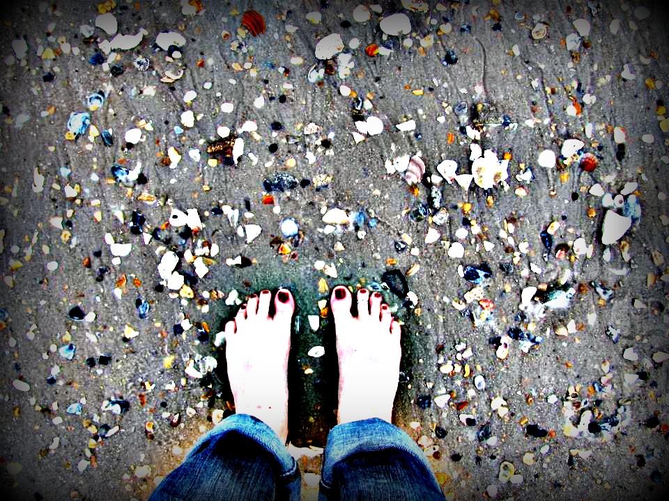 My “polar ice cap” is the beach.  Having lived within 15 minutes of the shore for a dozen years now, setting my eyes on the sea is still exhilarating for me, and searching the sand for treasures is still a Zen-like experience to my spirit.  Scanning the edge where the water meets the land, I watch carefully as the waves deliver shells with every flow and suck them back out with every ebb.  It is an endlessly different place every time I visit, and I like suprises.